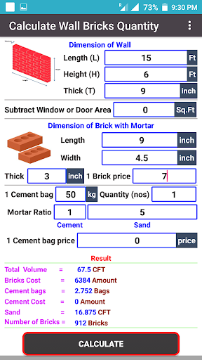 • Calculate Bricks Mortar Quantity Cement Bags and Sand.