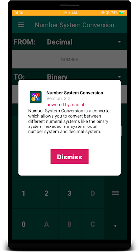 "Number System Conversion" is a converter which allows you to convert between different numeral systems like the binary system, hexadecimal system, octal number system and decimal system.