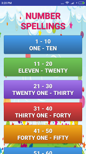 This is number spelling learning app to learn spellings for numbers from 1 to 100 for kids, toddlers, early schooler.
