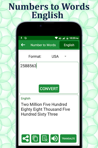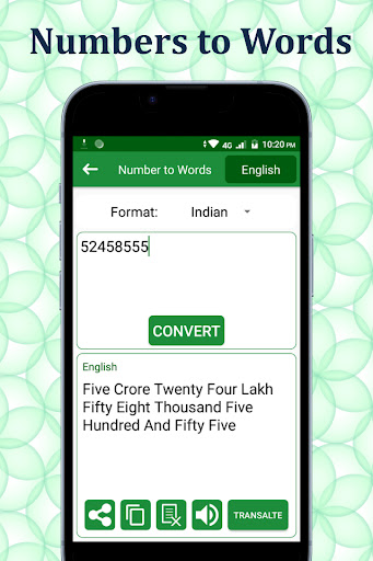 Numbers to words converter is a beautiful and viable mobile phone application for the present time. In this advance technological era, you can save your time and use it for other productive work in the presence of this useful numbers to words and words to number application.
