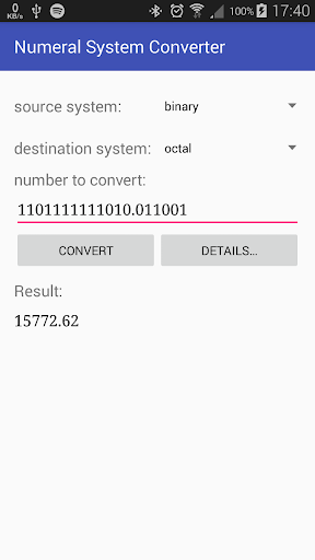 Numeral System Calculator is a calculator which allows you to convert and calculate between different numeral systems like the binary system, hexadecimal system, octal number system, and many more.