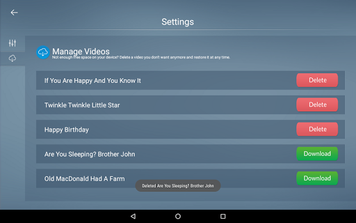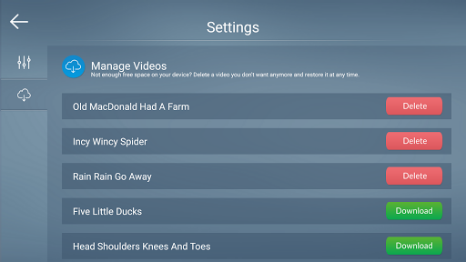 Watch the nursery rhymes videos anywhere you go, no internet connection required.