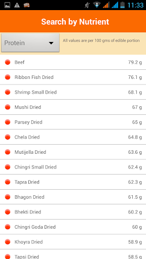 This app provides detailed nutrition facts for over 500 raw food items used in Indian cooking. The app provides following nutrition related tools: