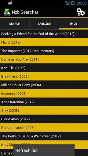 - Press menu in the IMDB screen to refresh the list