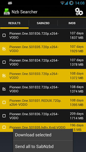 - Multiple downloads! Press menu in the results screen, press multiple downloads en select the nzb's you want to download and send them all to SabNzbD or save them on your sdcard.