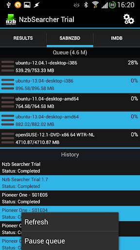 - Press menu in the sabnzbd screen to refresh or pause the queue