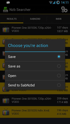 - Open the nzb directly from the app for downloading it on your phone (with for example PowerNzb)