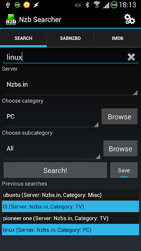Search and download Nzb's from your phone to your SabNzbd client or save/open them on your phone. At this moment only Newznab sites are supported so you need an API key/account from a Newznab site (for example Nzbs.org, DogNzb.cr or Spotweb) and of course you can use your own Newznab server.