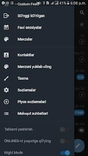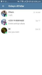 O'zbekgram telegramma ning API foydalanadi norasmiy xabar dastur. Bu https://github.com/rafalense/Plus-Messenger topish ajoyib Payg'ambar FORKS