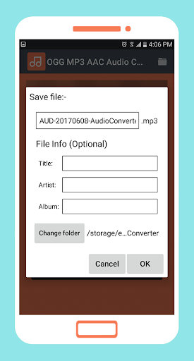 OGG MP3 AAC Audio Converter is a smart tool convert most popular audio formats like: OGG, MP3, AAC, m4a, 3gp, wav, amr and more. you can convert Ogg to mp3 or mp3 to aacc easily.