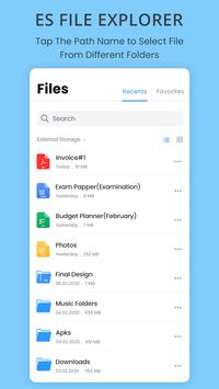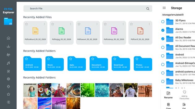 helps you handle all your files whether they are stored in your device's memory, microSD card, local area network, and cloud storage accounts. By default, ES File Explorer (ES File Manager) allows you to copy, move, rename, delete or share files to and from any of your storages. It also lets you browse and access your files by category.