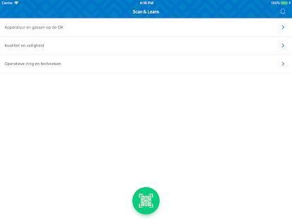 Scan&Learn is bedoeld voor operatieassistenten. Het geeft alle benodigde kennis op een overzichtelijke manier weer. Door de QR-codes op de operatiekamer te scannen wordt direct het relevante onderdeel geopend. Maar ook zoeken in een lijst met alle onderwerpen is mogelijk.
