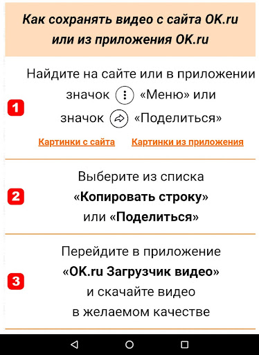 - On the OK.ru website, hold your finger on the description of the video (or on the video itself) so that the menu appears;