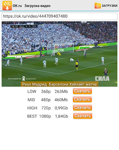 - Go to the application "OK.ru Video Downloader" and download the video in the desired quality.