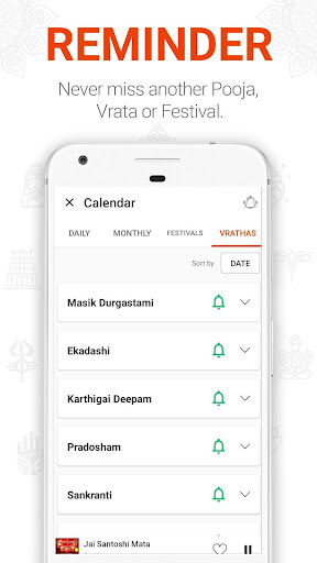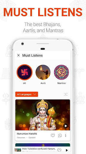 Here is your go-to app to listen to devotional songs, popular devotional songs, songs on almost all deities, including Shiva, Ayyappa, Devi, Shirdi Saibaba, Vinayagar, Shri Ram, Krishna, and Perumal, among others, devotional stories, devotional albums, and also to read your Daily Panchang. All of this is available in one app, and it can be accessed in multiple languages - Tamil, Hindi, Telugu, Malayalam, Kannada, Bhojpuri, Bengali, Marathi, Sanskrit, Punjabi, and Gujarati.