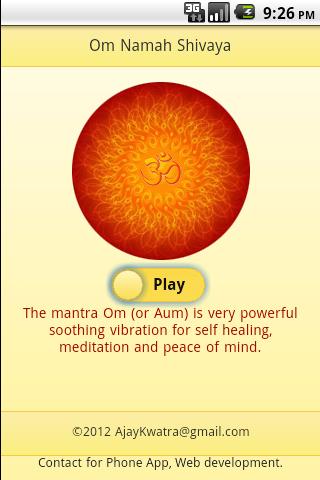 The mantra Om Namah Shivaya (or Aum) is very powerful soothing vibration for self healing, meditation and peace of mind.