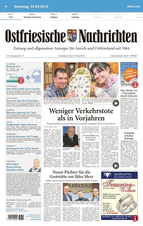 As a daily newspaper for Aurich Ostfriesland and the East Frisian messages (ON) inform about six times weekly happenings in the region and the world.
