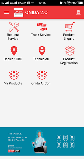 • Best way to connect ONIDA for services like Repair/ Maintenance/ Installation/ Demo by ‘ONIDA 2.O’ customer service application.