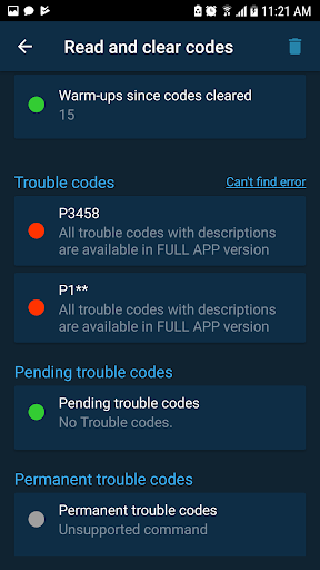 - search for trouble code descriptions and possible solutions in the internet by clicking on the code;