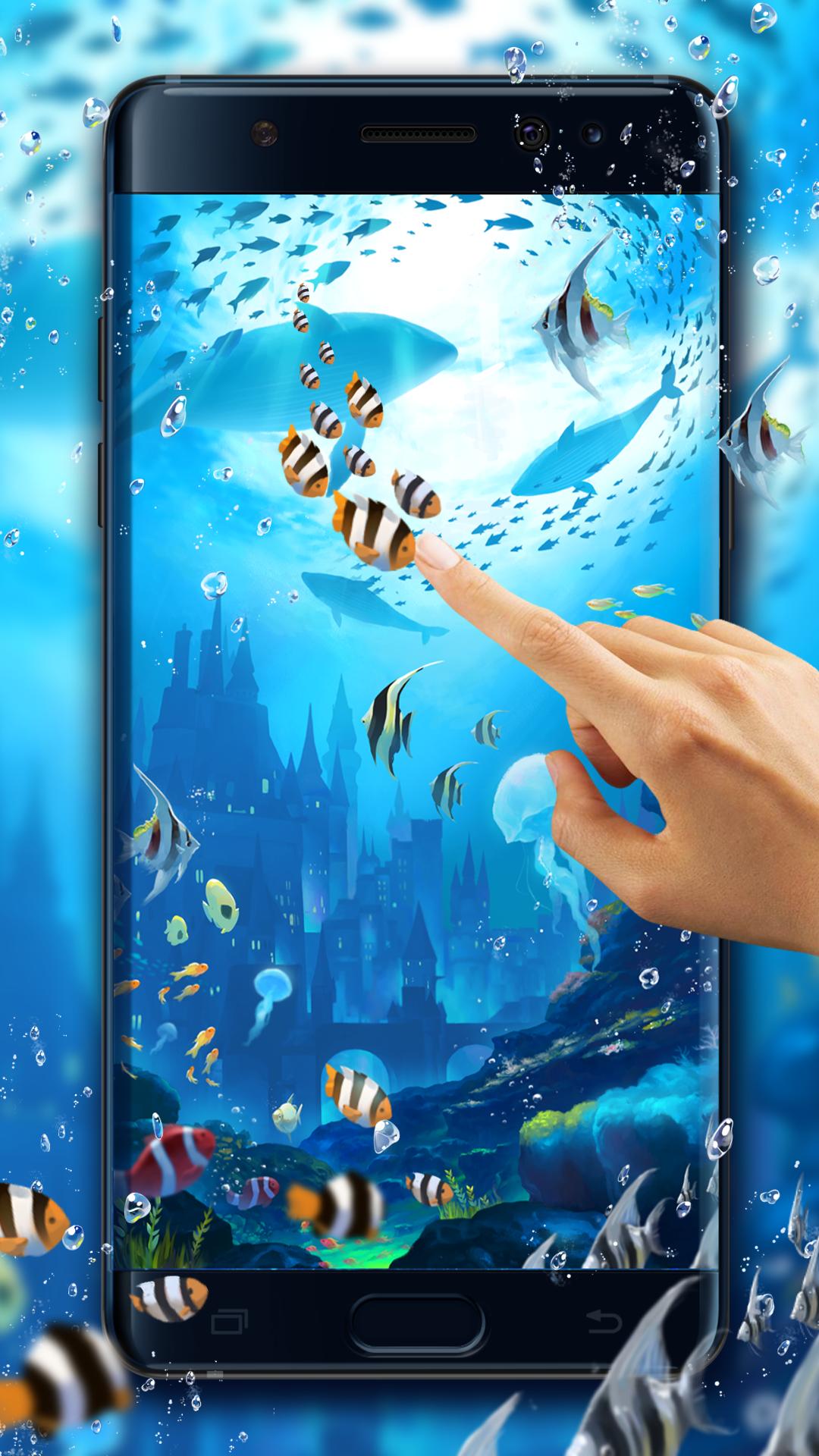 The Ocean Fish Live Wallpaper will show you interesting landscape of the undulating undersea. In the undulating undersea, a castle is found in the deep undersea, different kinds of ocean fishes and plankton are swimming happily around the coral in the water. There are big sharks, blue whales, jellyfish, striped clown fish, tropical fish, sea anemone and many other aquatic beautiful ocean fishes, full of animals and plants. All these likeable anime ocean fishes will make your phone screen look more lively.