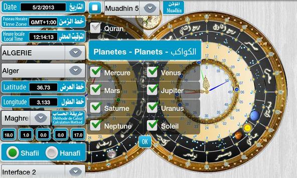 and many other usefuls parameters of our solar system. it calculate prayer times, and the compass direction of Mecca from all the world (By GPS or by Country). Just touch symbols on the screen to get information.