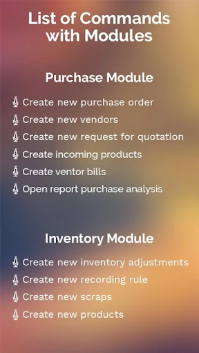 Odoo Voice is a new voice feature integrated with Odoo where one can easily work with Odoo using simple voice commands. Odoo voice provides you with a personal assistant Lisa who is proactive and always ready to help on a simple voice commands.