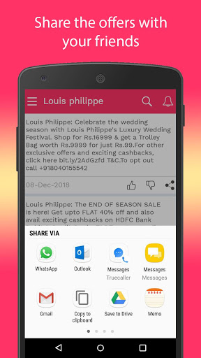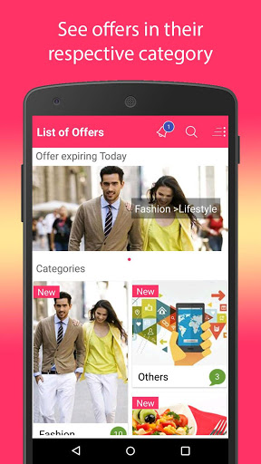 The app receive the offer and discount from your favourite merchants/shops and categorizes those offers into Fashion, Health, Travel, Spa etc.