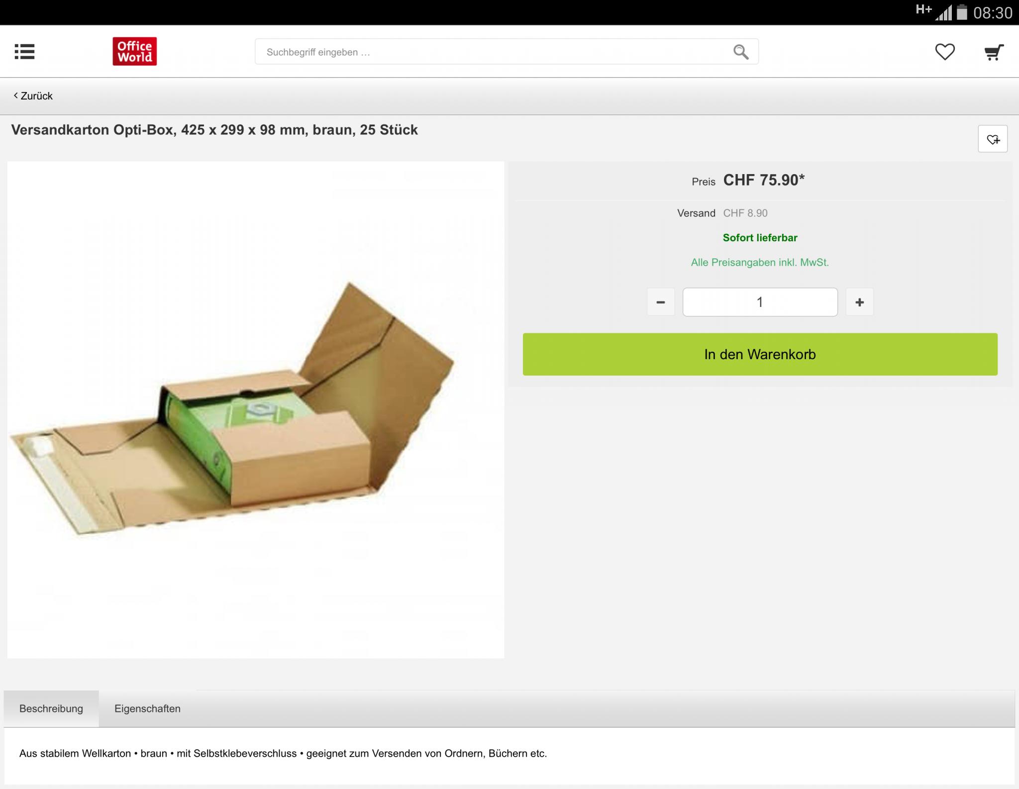 Stöbern Sie mit unserer Mobile App einfach und bequem im gesamten Produktsortiment von Office World. Sie erhalten alle Produkte, die Sie ebenfalls unter officeworld.ch kaufen können.