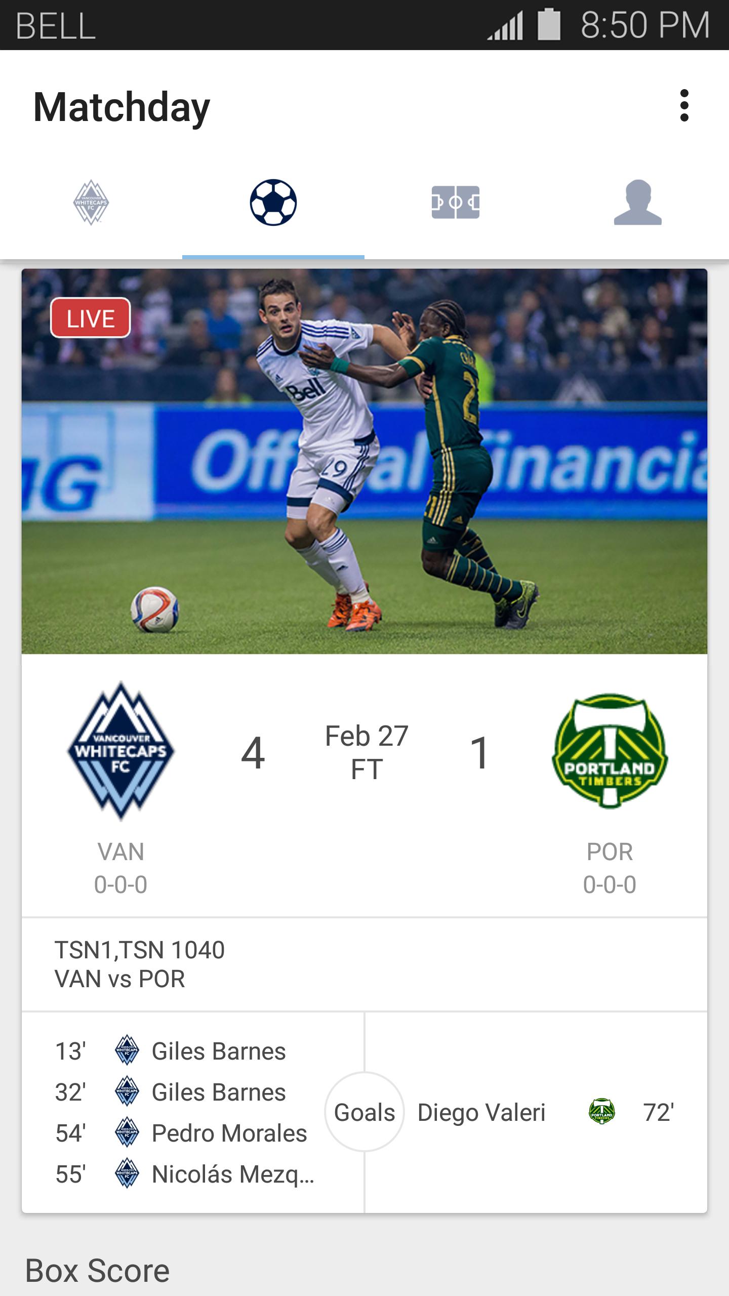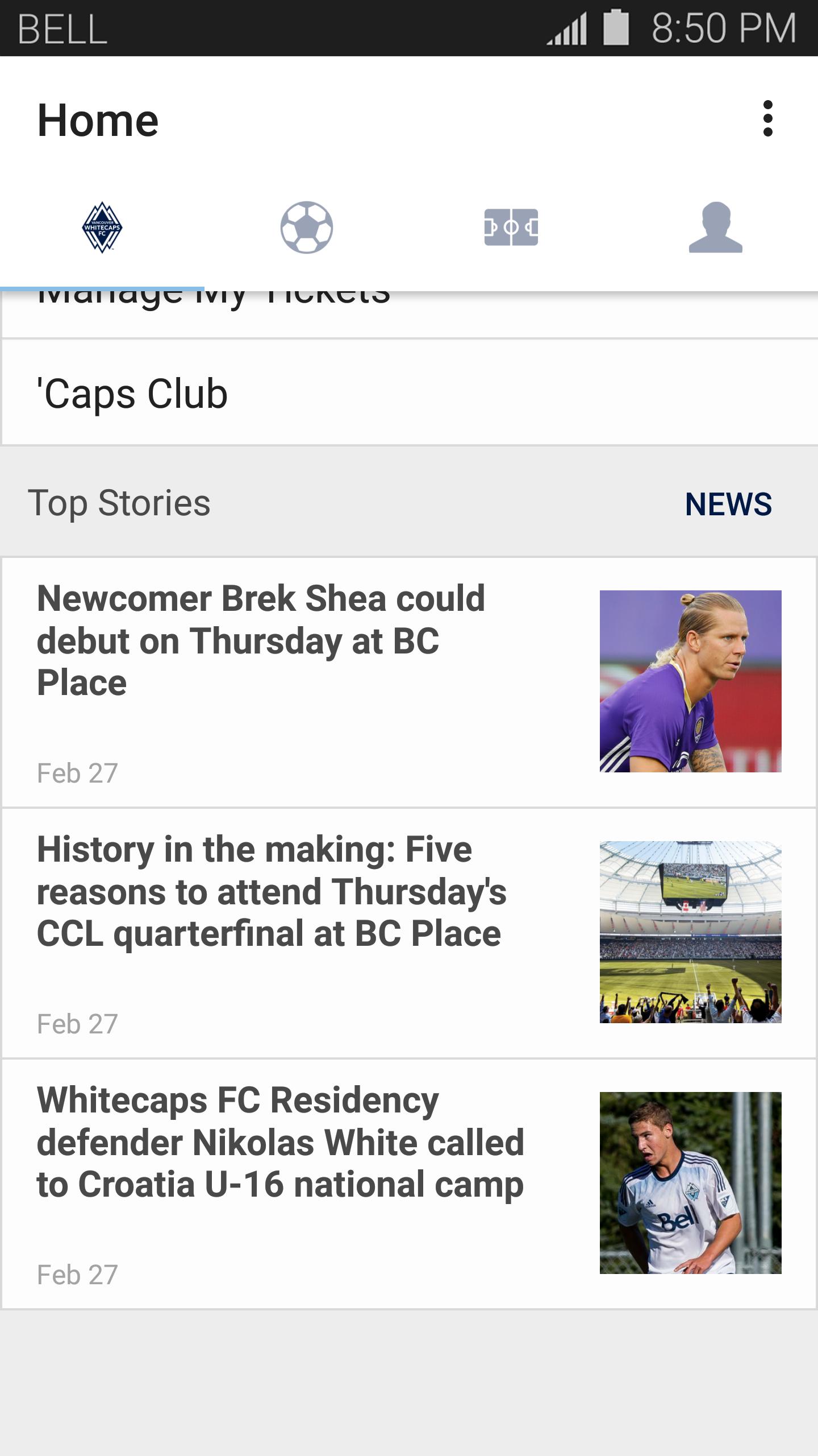 The official application of Vancouver Whitecaps FC, presented by Bell, is your comprehensive mobile companion while following the ‘Caps. Download today for live stats, team standings, exclusive content, personalized offers and rewards, and to manage your tickets. Powered by Uphoria.