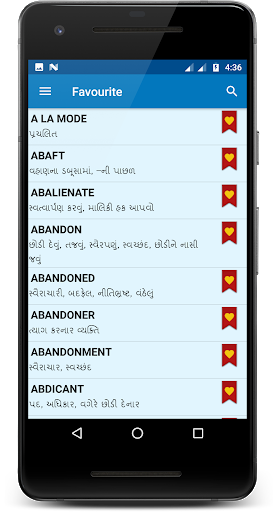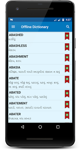 Free Offline English to Gujarati dictionary. It helps you to search meaning of word and add to Favorite List for future reference.