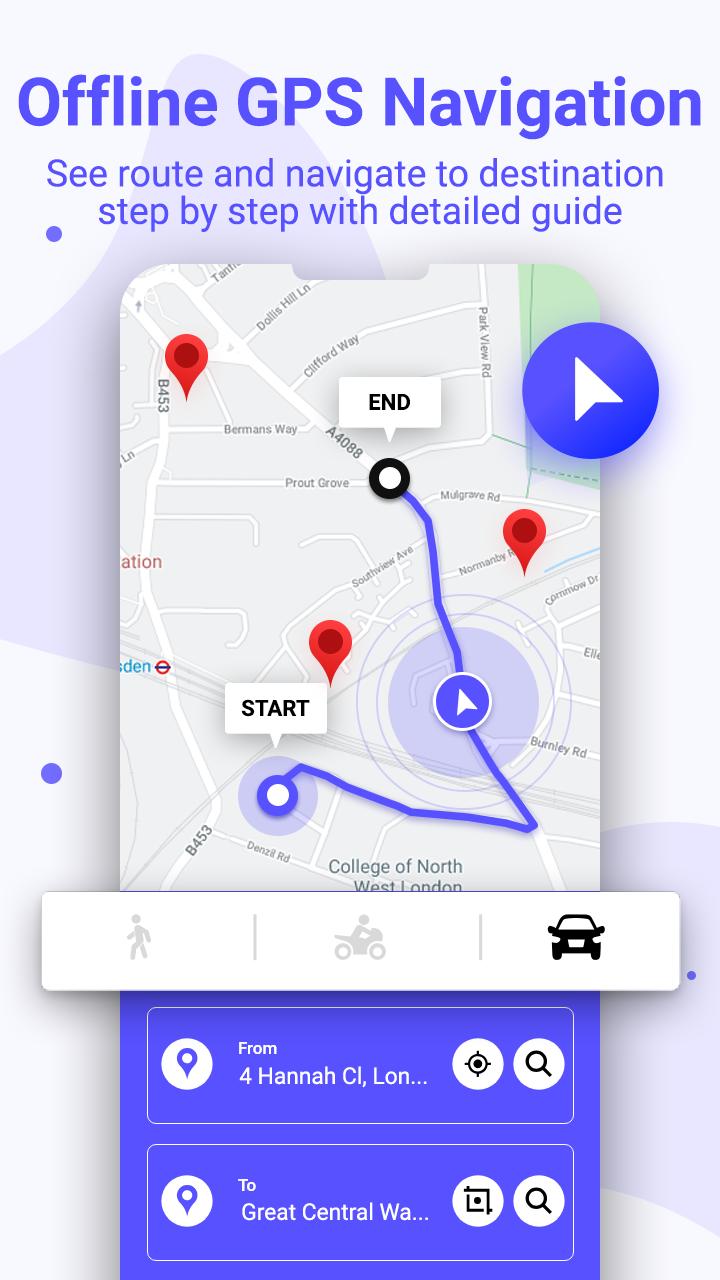 Offline Map – Free GPS maps navigation and direction. The best directions app to keep when go on trip. The offline GPS map app is very useful, it helps with offline maps navigation and navigate directions while driving without needing the Wi-Fi or internet connection. First of all, search your desired location i.e. country, when you find it in the list, download country offline map. The GPS app with navigation map is best for a user who is using this app while driving in an area where internet connection is not good enough and this is where these offline maps comes handy as they comes with GPS voice navigation to reach out your location. The travel map is easy and interactive to operate. You can view the road map through GPS map location and it is just one click map download. Keep this offline GPS maps, send navigation that makes your trip easy while going on a journey.