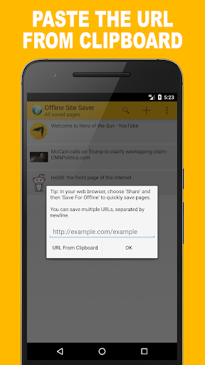 Simply paste in the URL or save the page directly from your web browser of choice using the 'share' feature to send the page to the app.
