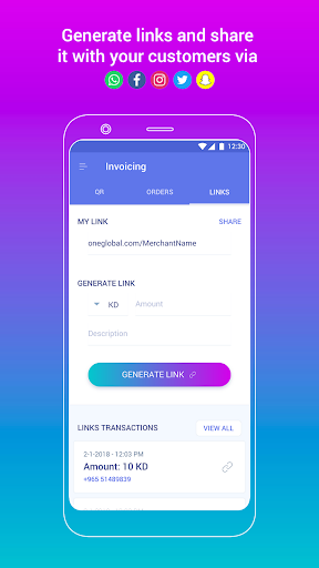 • The customer will receive the link via any channel sent through and pay the amount you entered.