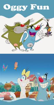 is a cat and a titular character in the series. He has a light blue body, green eyes, grey tummy and white feet. Oggy usually spends his time either watching TV or doing housework — when not chasing the cockroaches.