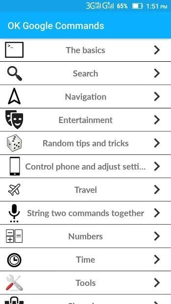 ->Discover commands, see possible examples, understand the usage of over 300 hands-free actions (commands) you can say to Google Now in your phone and find them in just a few taps! Everything you may ask your phone to do, from Search and Navigation, to Messaging and fantastic Easter Eggs are presented to you in the most intuitive and beautiful way in this full OK Google guide.