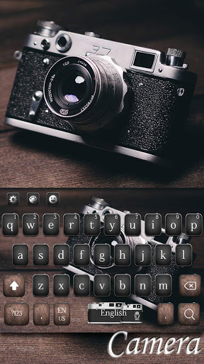 Black old camera keyboard theme with black camera wallpaper free for you.