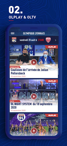 The app also allows you to discover the different Olympique Lyonnais divisions: Male, Female, Academy, eSport, as well as OLPLAY. The whole club is at your fingertips!