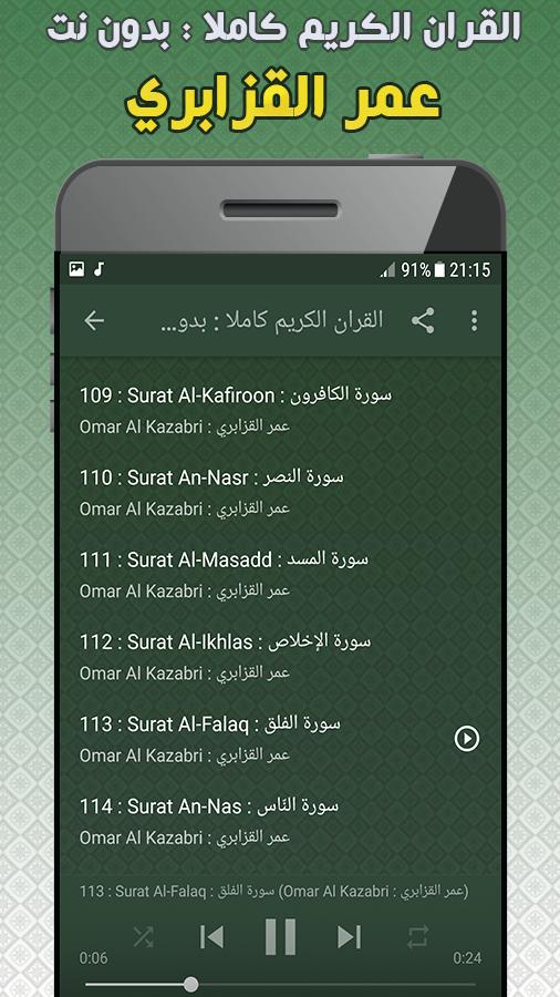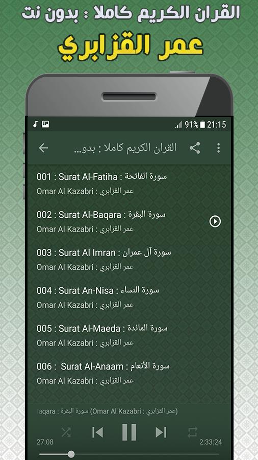 تحديث جديد "اصلاح جودة الصوت" عمر القزابري القران الكريم كاملا بدون نت المصحف على رواية ورش عن نافع