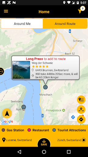 Let’s say, you were to drive from Lucerne to Zurich, and would be interested in knowing about “tourist attractions”, as well as some “restaurants” and “fuel stations” along the way. The ON THE WAY app could help you do just this, and easily so...