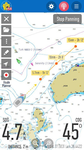 - Additional information during sailing (time to next waypoint, next ETA, final ETA, distance & bearing to waypoint)