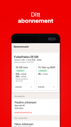 Приятно знать! Убедитесь, что приложение обновляется, чтобы иметь доступ к последней функциональности. Электронная почта по адресу kundeservice@onecall.no