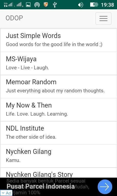 Aplikasi ini menampilkan blog-blog yang mengikuti komunitas One Day One Post.