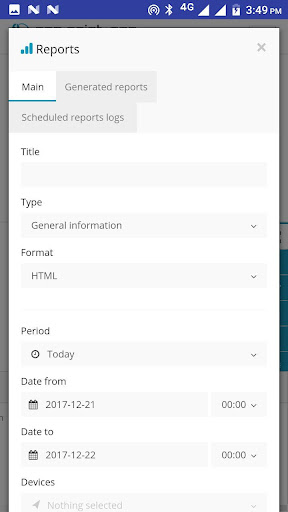 · History and Reports - Preview or download reports. It can include various information: driving hours, stopovers, distance traveled, fuel consumption etc.