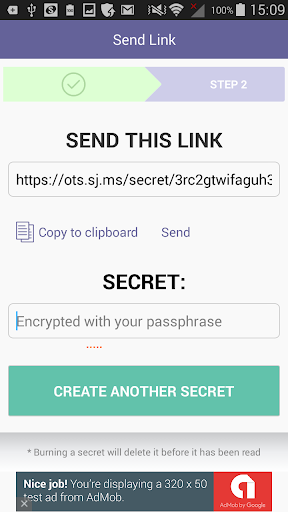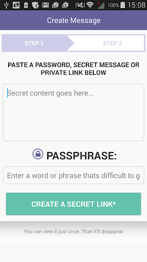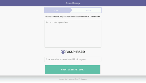 The service allows to create a single-use link from a mobile phone or a tablet, and after following a link the message will be deleted from the server forever.