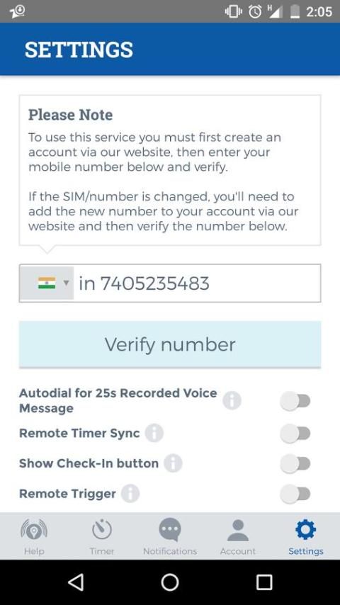 - Worried about losing your phones signal and ability to send an alert, for example working in the basement? You can now synchronize the remote timer in your personal account in the cloud by simply sliding a button in the app and your alert will be sent from your account and not your phone with you last location to your SOS contacts.