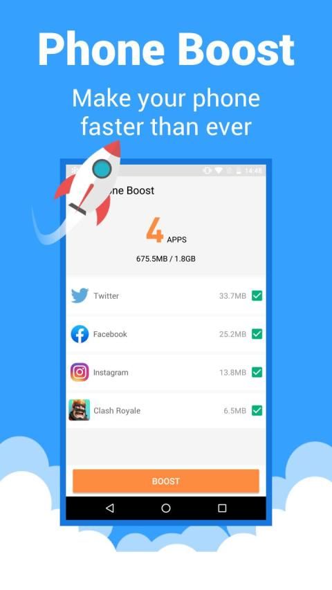 Cool down phone’s temperature and reduce cpu usage with the Space Cleaner & Memory Cleaner!