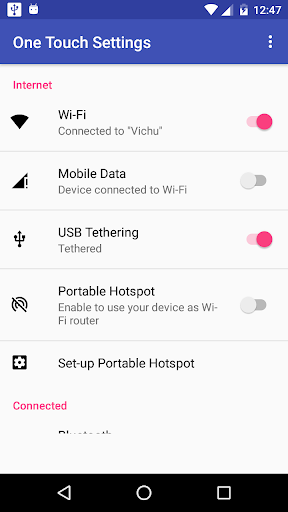 -Bluetooth : You can turn on/turn off bluetooth instantly