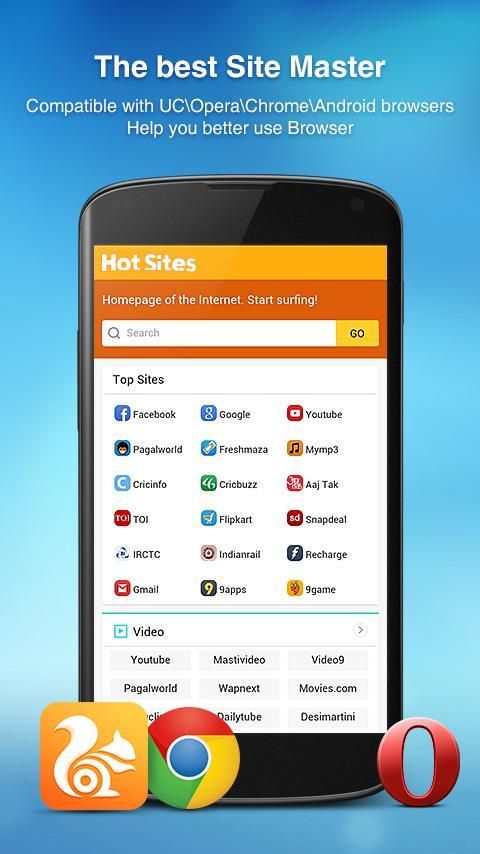 - Compatible with browsers such as UC, Chrome and Opera, Hot Sites collects lots of entertainment sites, you can watch videos online or download them. Bollywood and Hollywood videos are waiting for you!