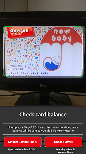 Please note: this app requests access to your camera to take a photo of your One4all Gift Card, access to your files to read the card number in the photo, and SMS to send a text message at your standard rate to our balance check system (if you have free SMS messages as part of your phone plan, this SMS will be free). A free SMS is then sent back immediately with the card balance.