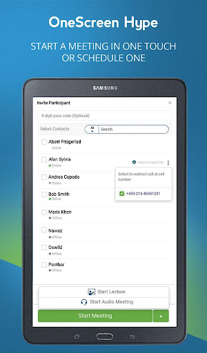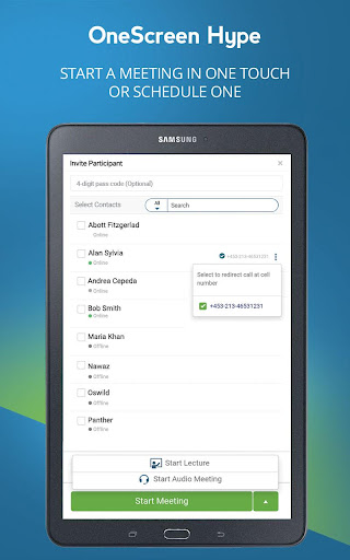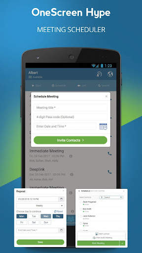 Upon install you can immediately host meetings with any device including mobile, desktop, laptop, tablet and conference room screen. Your guests don’t need a OneScreen Hype account, they can join using any browser, Skype for Business, H.323, SIP, dial-in or the OneScreen Hype app.